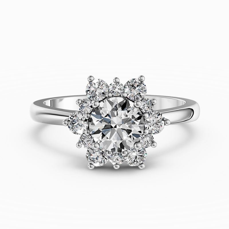 Белое золото, центральный бриллиант от 1 до 2 кт.